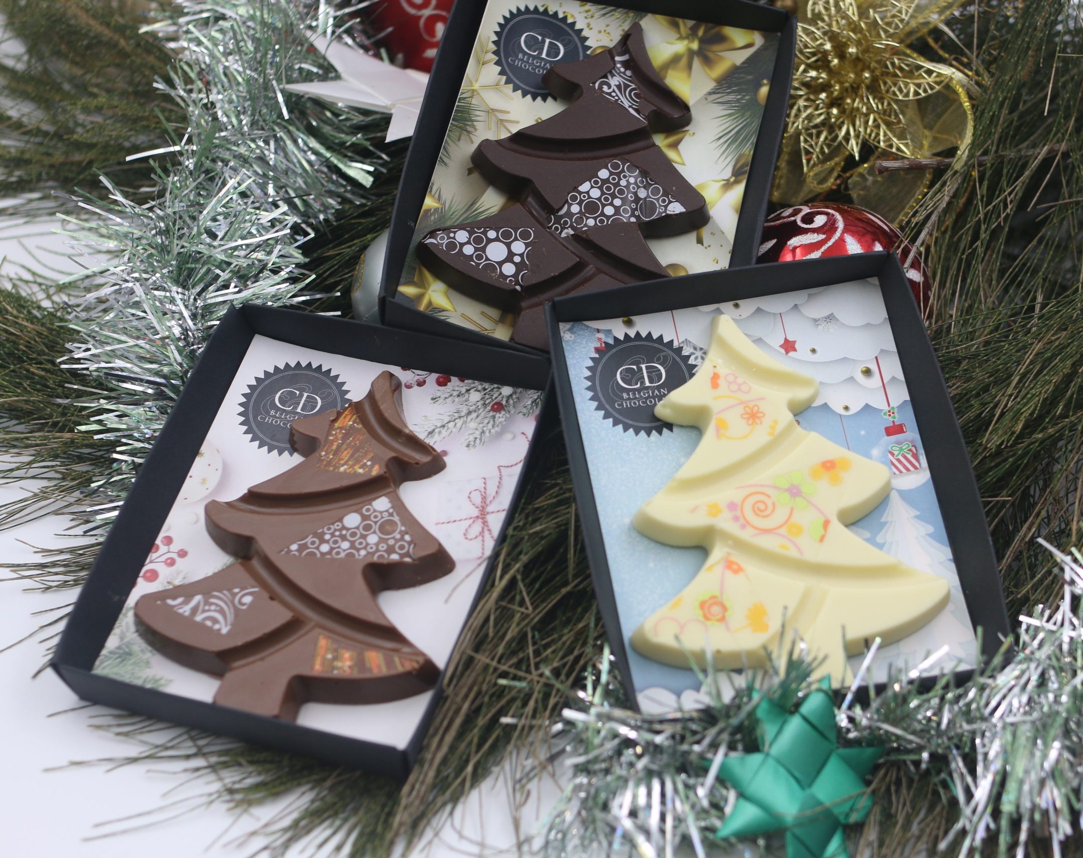 christmas tree | White 33% belgian chocolate, milk 40% belgian chocolate, dark 55% belgian chocolate |